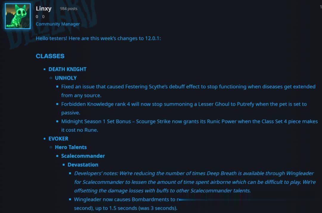 开发者说明:我们将降低通过群龙之首天赋使鳞长使用深呼吸的频率,以减少在空中停留的时间,因为这可能难以操作。我们将通过增强其他鳞长天赋来弥补伤害损失。