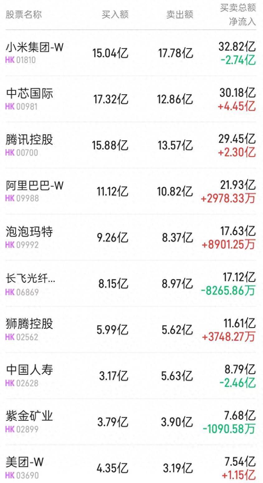 此外,狮腾控股(02562)获净买入3748万港元,而长飞光纤光缆(06869)遭净卖出1.59亿港元。